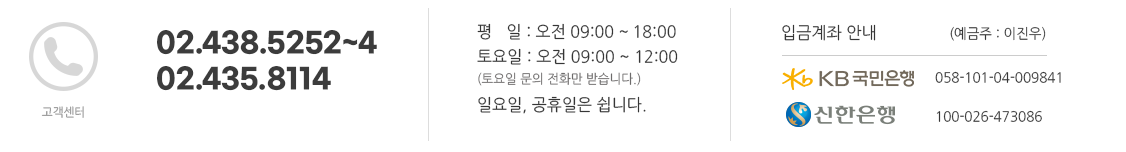 사업자 등록번호. 216-12-63277 대표. 이진우 전화. 02-438-5252 팩스. 02-434-8117